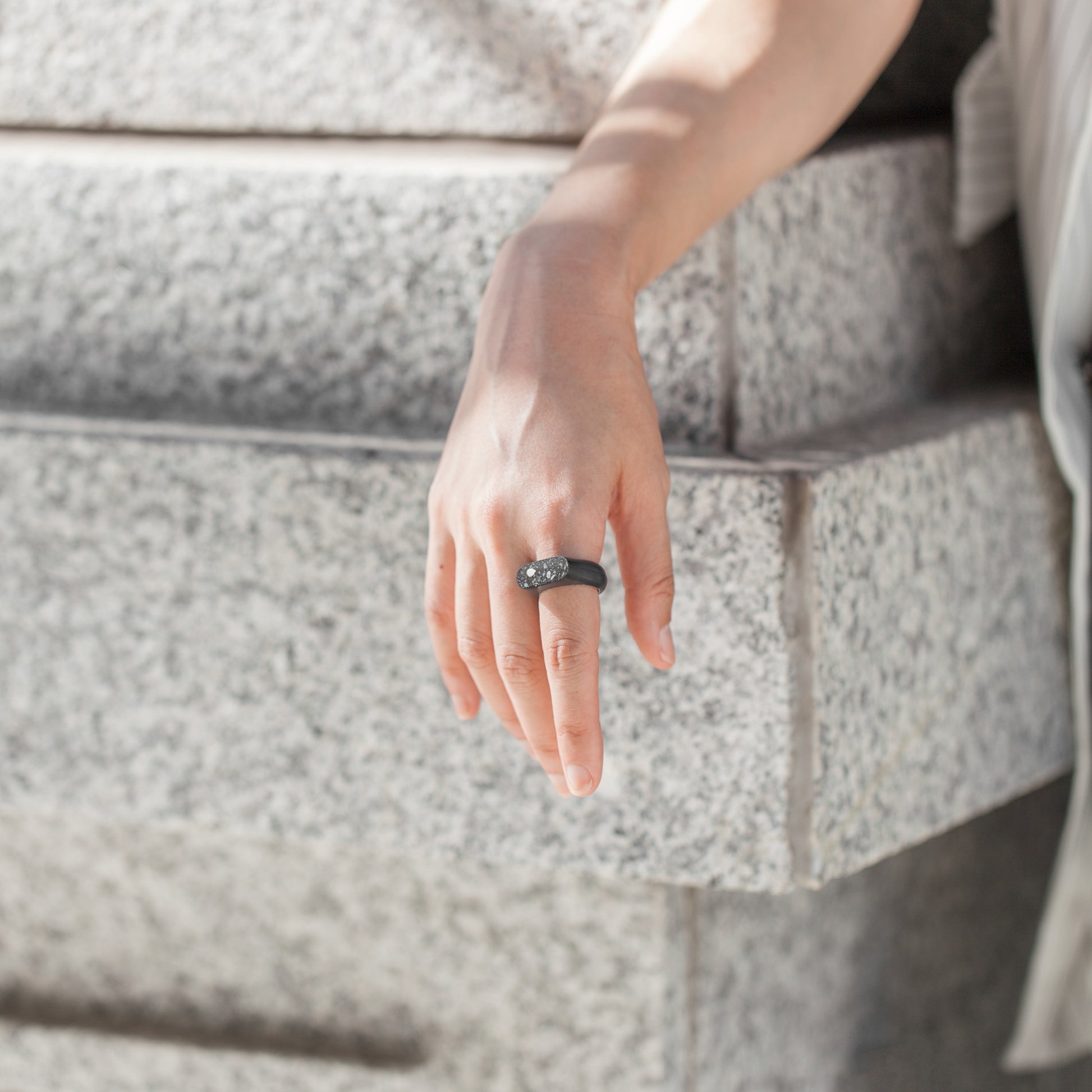 The exposed “Terrazzo Effect” is seen on our Upright Ring’s face while its sides retain the polished concrete finish. It is our design adaptation of a philosophy that faces the world with boldness and confidence but retains a respectable quietude in privacy.