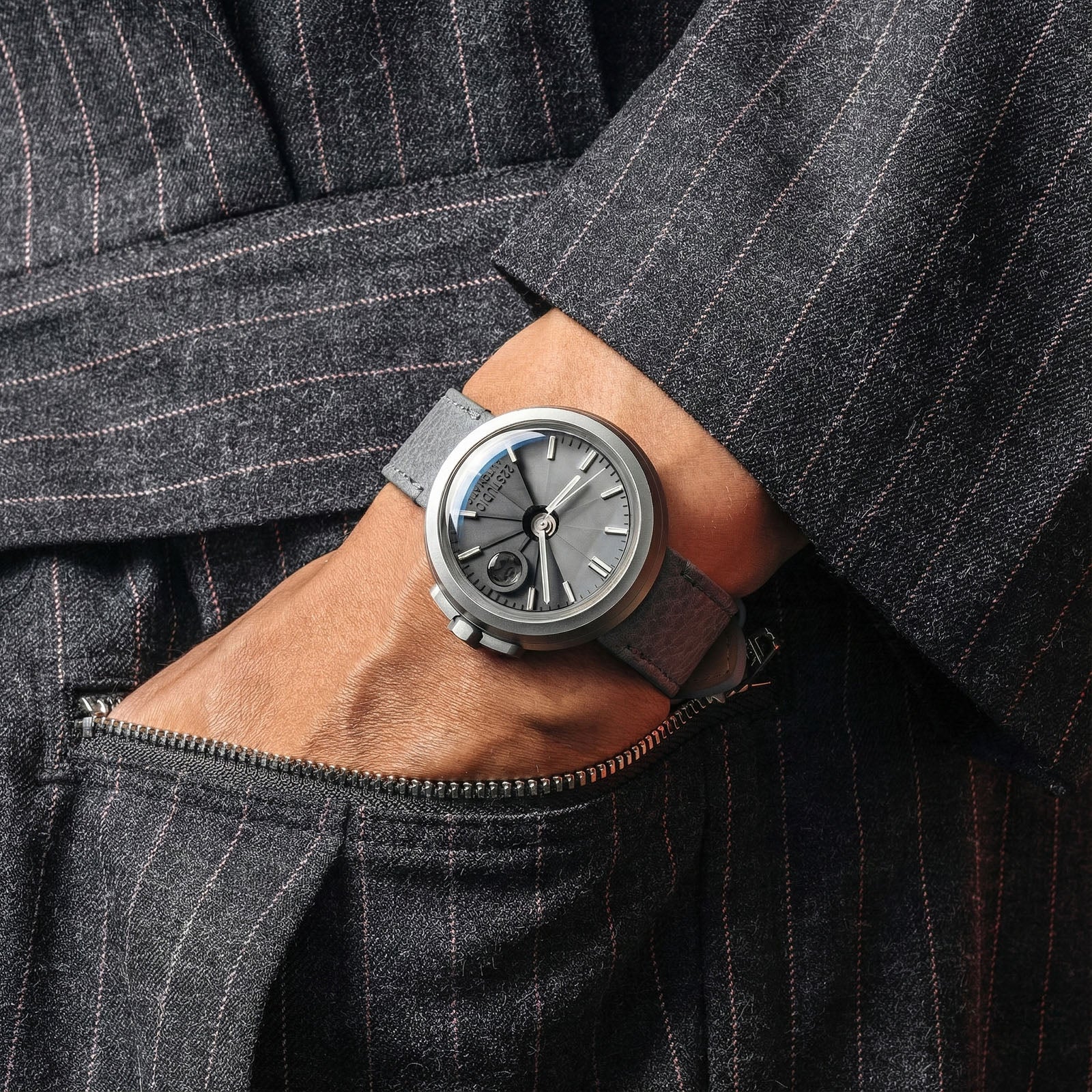 Gaze at the new watch, and you see a piece of Brutalist architecture standing on your wrist. Concrete, stainless steel, bronze, and leather—diverse materials presented in their raw, honest form.