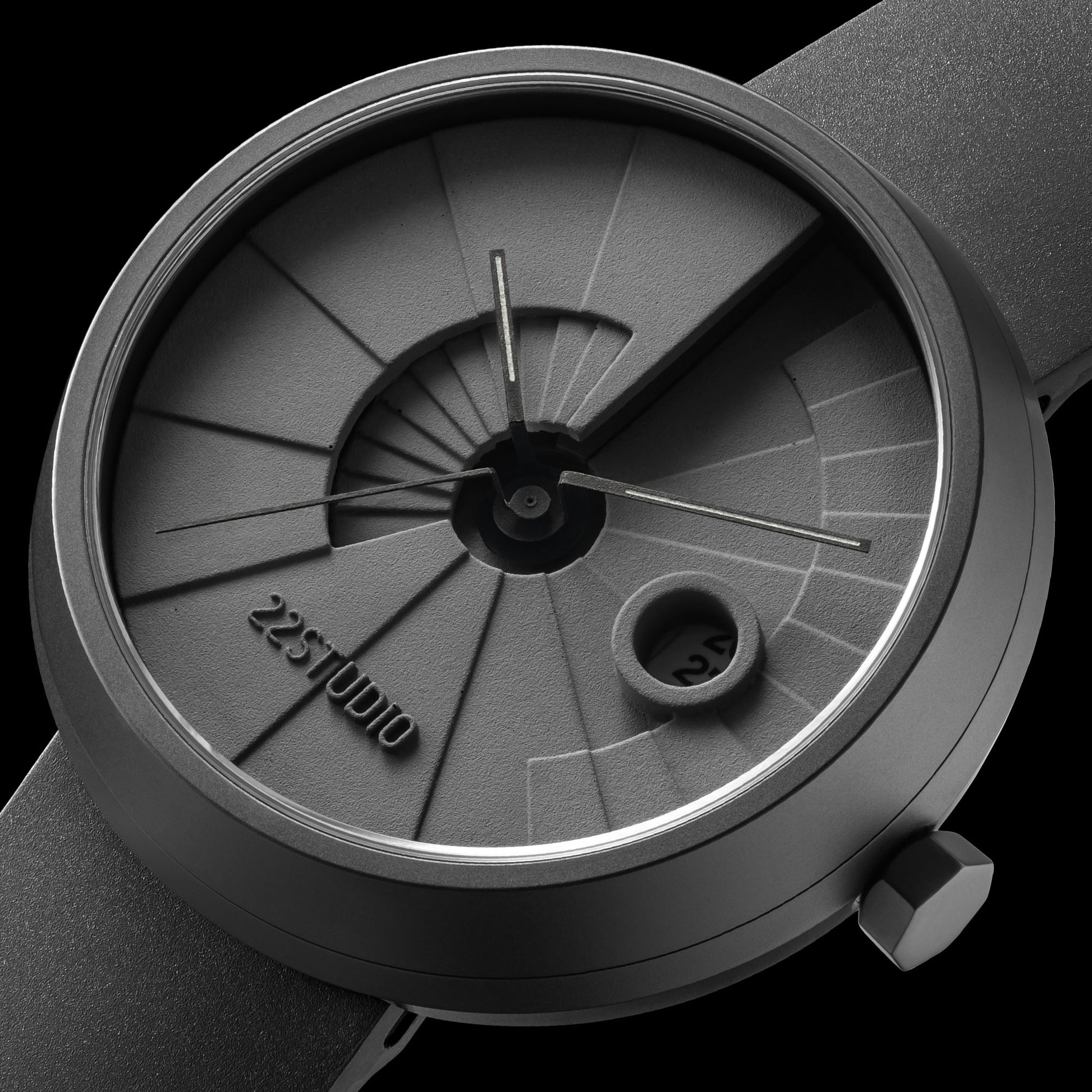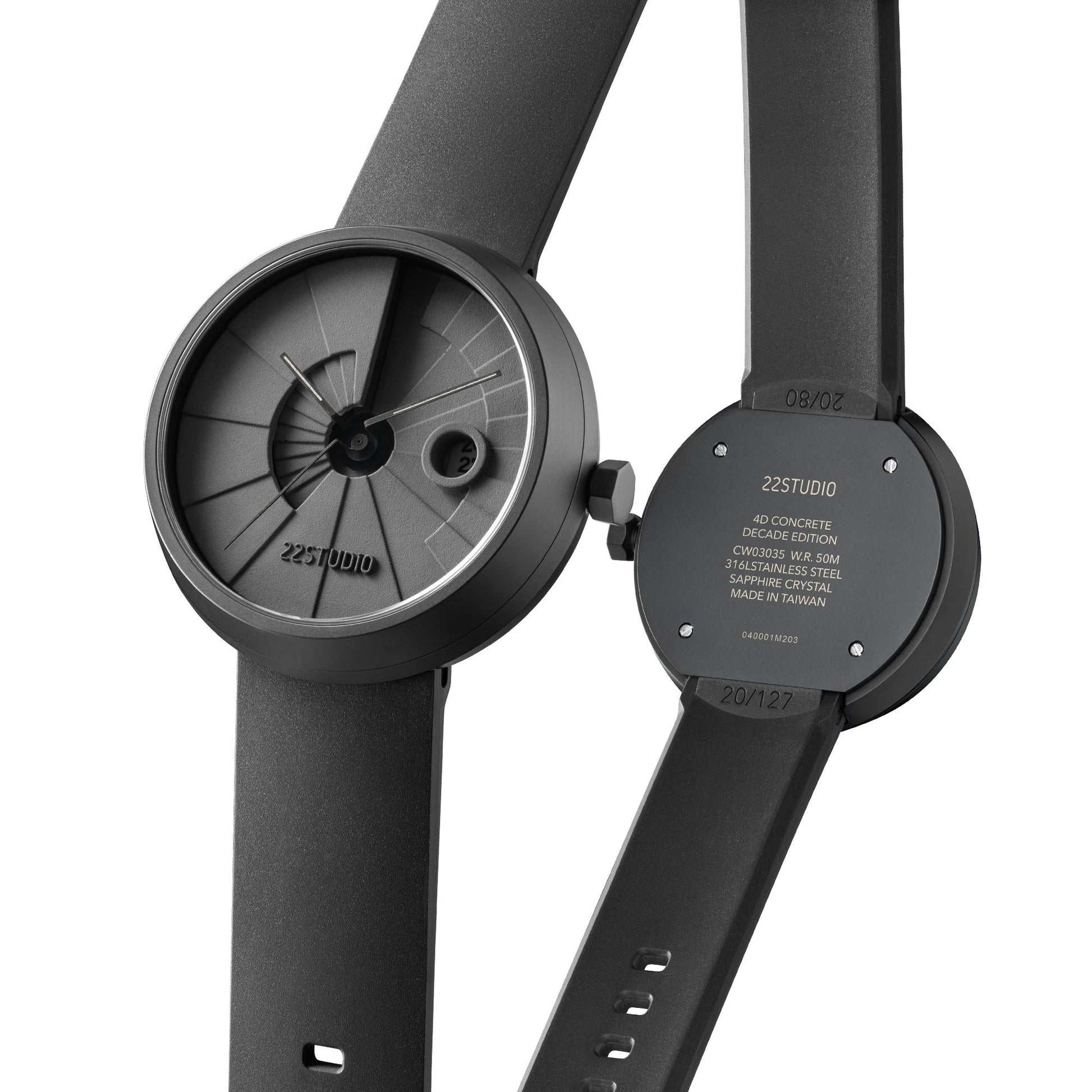 Striking the optimal balance between the weight of the concrete watch and wearing comfort has always been our priority. After numerous attempts, 22STUDIO has finally developed a "strap curvature fixer" specifically for our watches. This fixer creates a perfect oval shape when attaching the strap to the watch, significantly improving the wearing experience with better balance and comfort. It is first introduced in the Ten-Year Anniversary Upgraded Classic Edition of the Four Dimensions series.