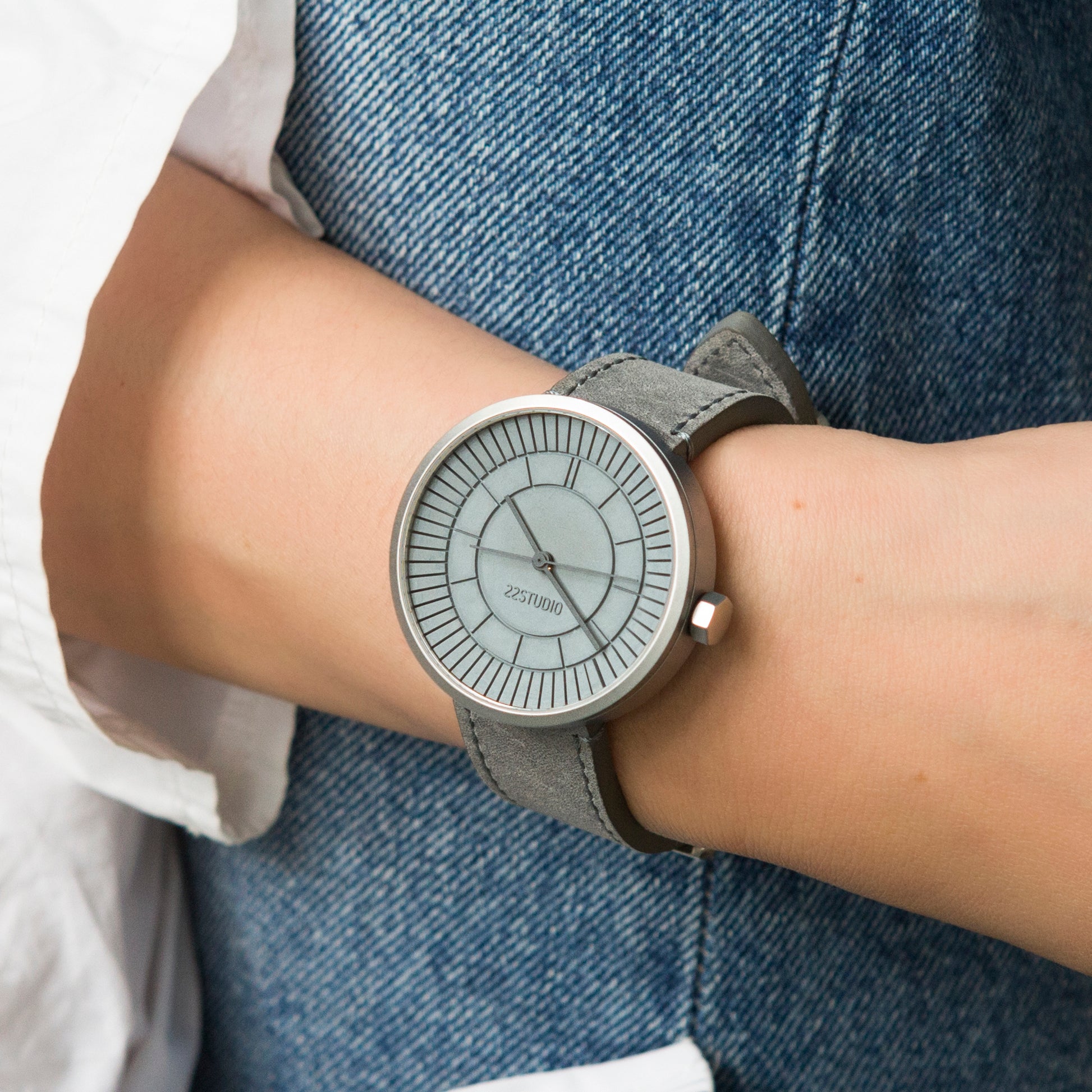 The singularity and simplicity are undoubtedly the original obsession of 22STUDIO with "concrete" as its design gene. The sandblasted stainless steel case, the grey crazy horse leather strap, and the texture of the grey concrete dial are ingeniously matched. The all-grey color gradation can be easily matched with various dressing styles. It is as classic and easy to match as the “N brand” grey running shoes. It is very suitable for boys and girls!