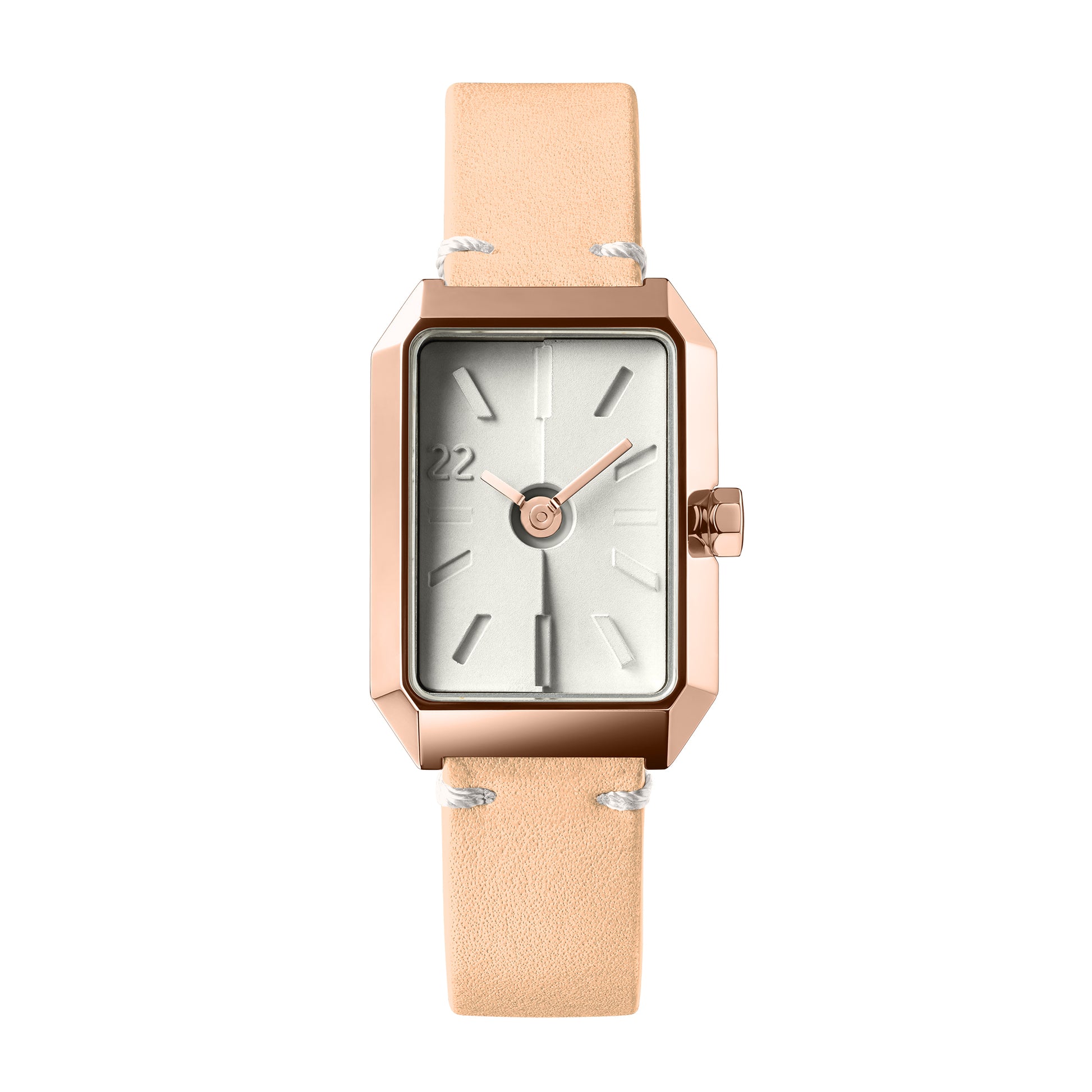 Breaking away from the conventional four-sided form of traditional rectangular watches, the case design is inspired by geometry sculpture. The entire watch structure is composed of 20 mirrored surfaces, reflecting the surrounding scenery from different angles at any moment. Wear it on your wrist, and it sparkles! The watch size perfectly fits the wrist width, and the naturally draping strap secures the watch comfortably. The strap's angle echoes the lines of the case's sides, ensuring a very comfortable fit.
